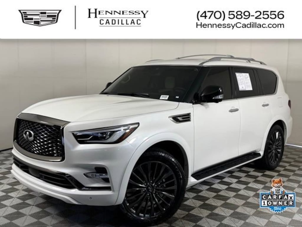Hennessy Cadillac is proud to offer you this Exceptional 2023 INFINITI QX80 Premium Select! It comes well appointed, is exceptionally clean, and has undergone a rigorous mechanical and cosmetic reconditioning process. Come see why our cars are a cut above!Options include:Clean CARFAX. Recent Arrival! Odometer is 16419 miles below market average!Welcome to Hennessy Cadillac, Georgiaâs #1 volume dealer of Certified & Pre-Owned Cadillacs! We offer the largest selection of New & Pre-Owned Cadillacs in the market, accompanied by impressive offers and unparalleled service!Complete the entire process from the comfort of your home and let us handle the rest! Nationwide shipping is available, and Hennessy customers are eligible for Complimentary Loaners upon request!We are a proud part of the Hennessy family, the most trusted name for luxury vehicles in metro Atlanta for over 50 years! Hennessy operates 15 dealerships in the Atlanta market, which provides us with access to an over 2,500 vehicle network! No matter what you are interested in, we can help! Price includes ETR and Dealer Fee.